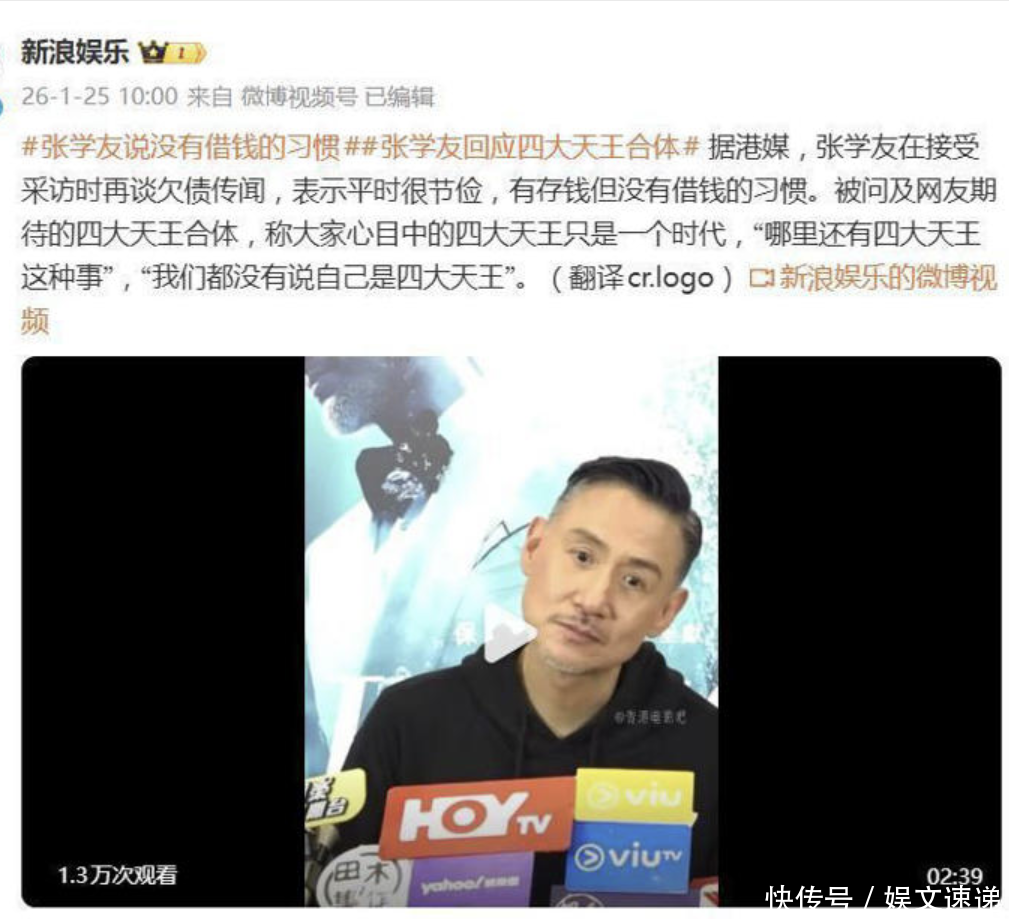 张学友4年欠债20亿?本人回应:我有存钱的习惯,我不欠债