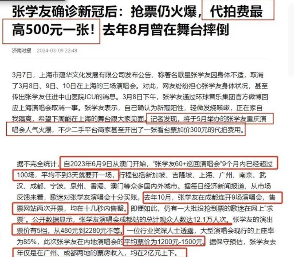 还有场地租赁、跨境税费等等,再加之张学友因病取消多场演唱会所要承担的违约金等等。